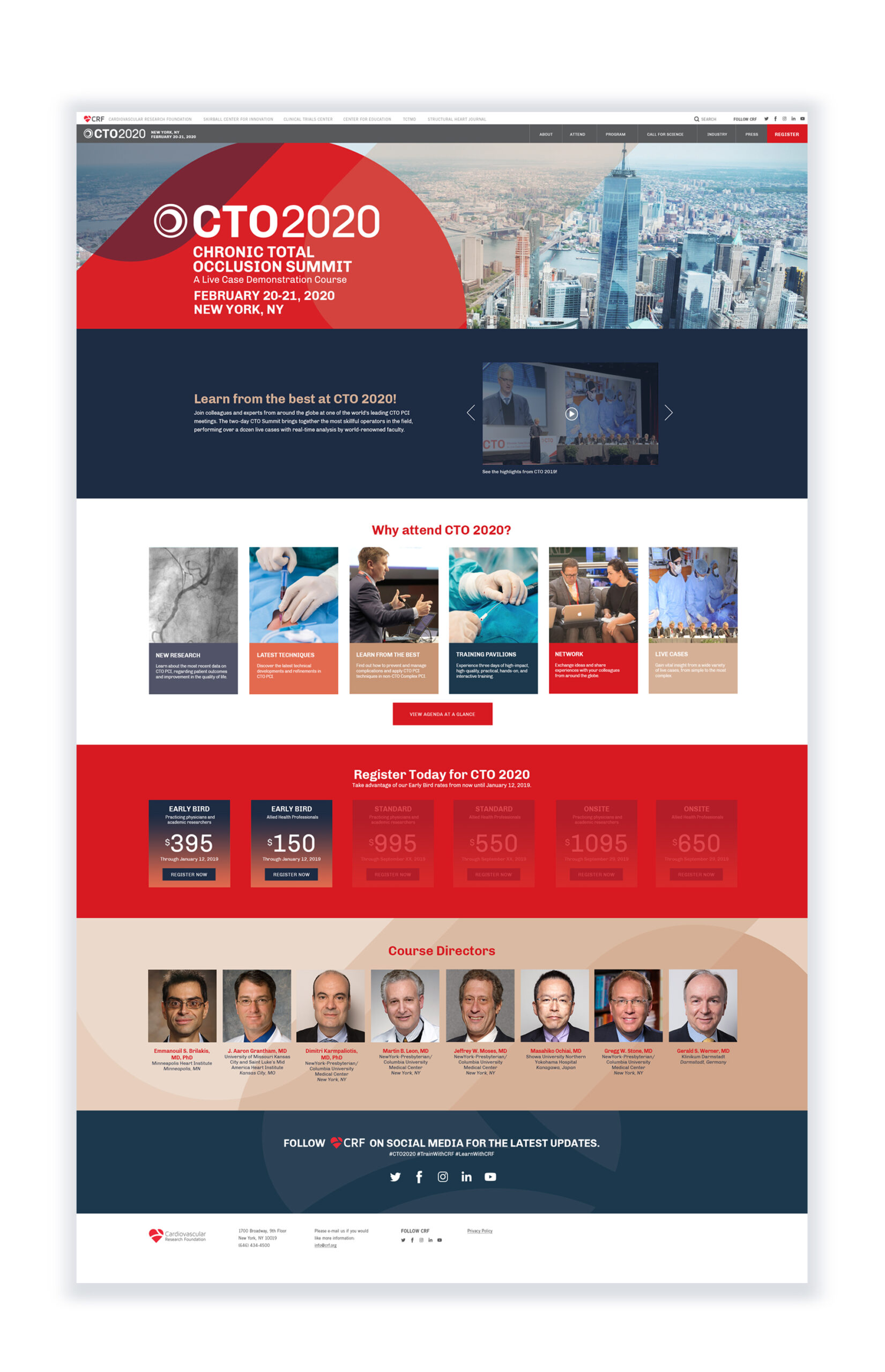 The annual Chronic Total Occlusion Summit delivers first-rate education and training on recanalization of chronic total occlusions. Practitioners learn state-of-the-art, advanced techniques from the most brilliant minds in the field. The stakeholders requested branding that emphasized the subject and location.