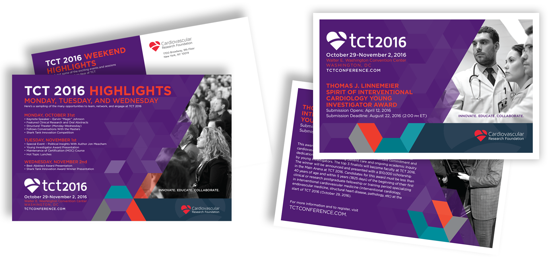 TCT (Transcatheter Cardiovascular Therapeutics) is the industry’s leading interventional cardiology conference, with approximately 10K global attendees. By using the brand color palette, I used the hexagon, an often used shape in science, as the main identity for the brand.